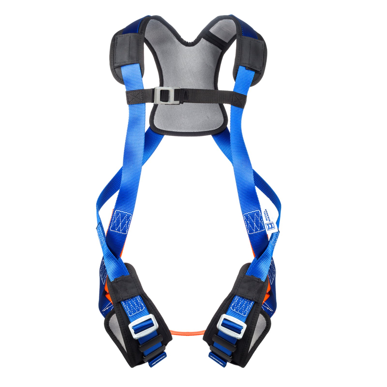 - Dispone de un punto de enganche anticaídas en la zona dorsal formado por una anilla en D fabricada en acero.