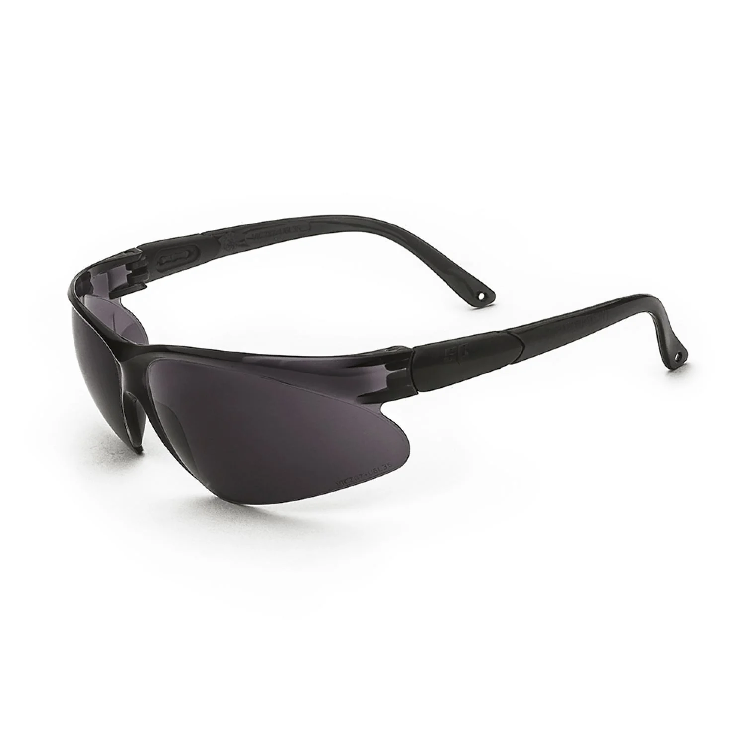 Lente de seguridad con visor de policarbonato, marco de nylon y patilllas con insertos de silicona flexible para su mejor adherencia. Lente deportivo resistente a impactos, antirayadura y con filtro solar 99.9% de protección UV.
